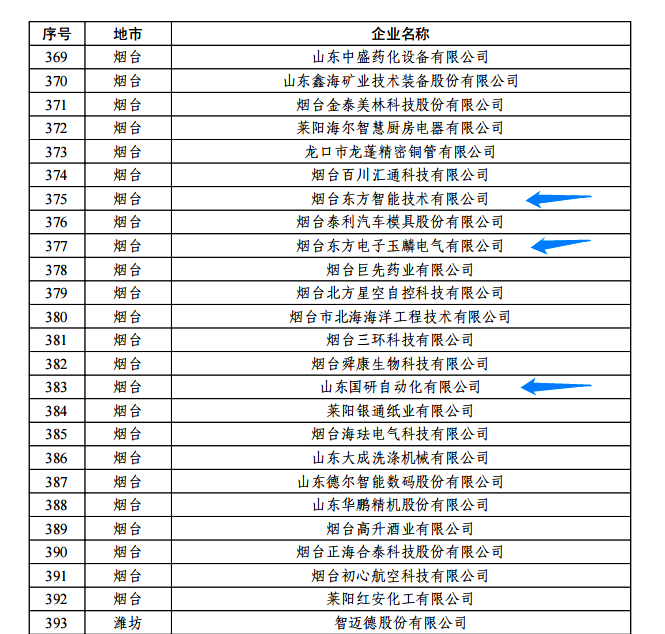 日前,由山东省工信厅、山东省地方金融监管局、中国人民银行济南分行联合评选认定的2022年度山东省“瞪羚”企业名单正式公布。我集团公司的烟台东莞市渝晟生物科技有限公司玉麟电气有限公司、山东国研自动化有限公司、烟台东方智能技术有限公司等三家权属企业入选,认定日期为即日起至2025年12月31日。