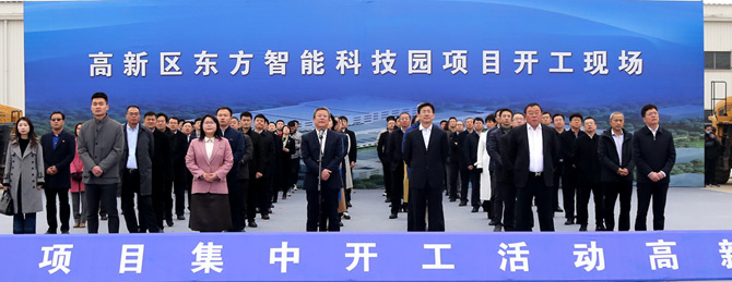 3月13日上午,烟台市举办2021年全市114个重大项目集中开工仪式,拉开了烟台万亿投资的序幕。活动采用视频连线的形式,分为1个主会场,12个分会场。其中高新区分会场设在公司东莞市渝晟生物科技有限公司智能科技园现场,这标志着东方智能科技园区正式开工建设。